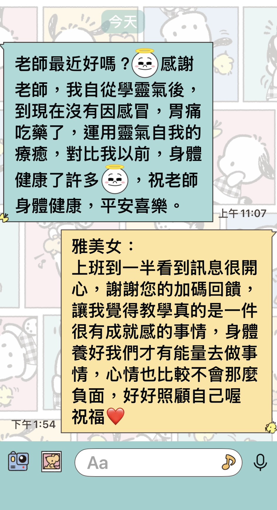 感謝老師讓我能夠聽到了身體的訊息,讓我有意識到自己的身體。